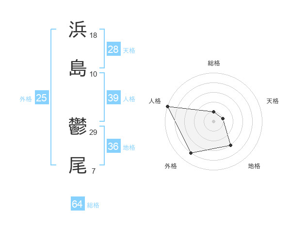浜島 鬱尾さんを姓名の画数から五運を鑑定