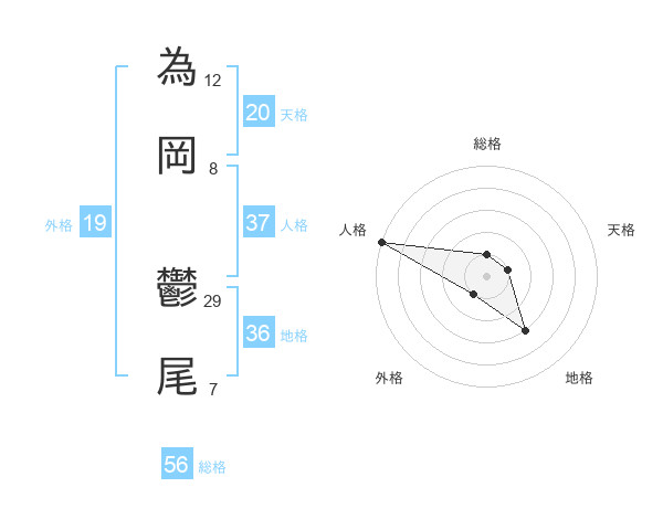 為岡 鬱尾さんの総格は56画の1点!