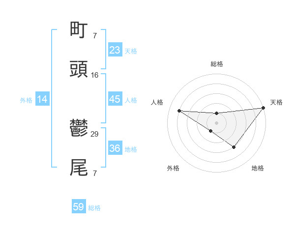 町頭 鬱尾さんの総格は59画の1点!