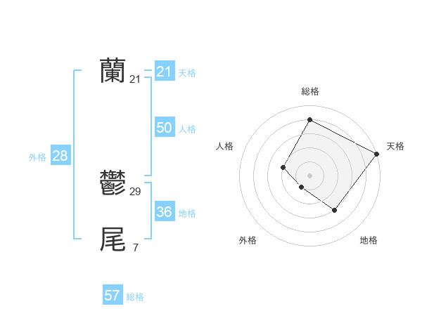 蘭 鬱尾さんの総格は57画の4点!