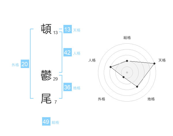 頓 鬱尾さんを姓名の画数から五運を鑑定