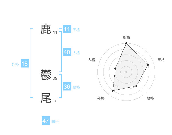鹿 鬱尾さんの総格は47画の5点!