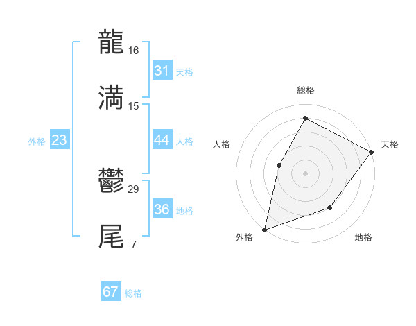 龍満 鬱尾さんの天格は31画の5点!