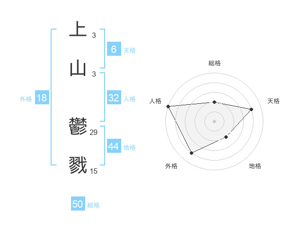 上山 鬱戮さんを姓名の画数から五運を鑑定