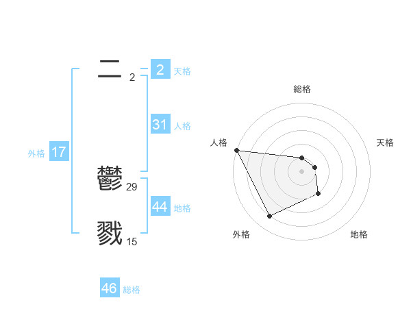 二 鬱戮さんを姓名の画数から五運を鑑定