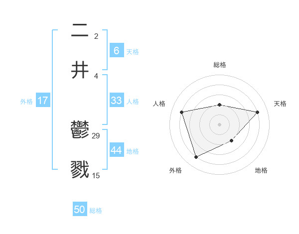 二井 鬱戮さんを姓名の画数から五運を鑑定