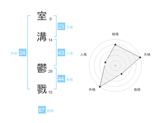 室溝 鬱戮さんを姓名の画数から五運を鑑定