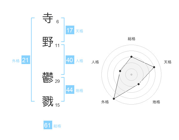寺野 鬱戮さんの総格は61画の3点!