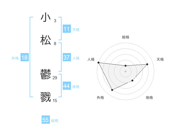 小松 鬱戮さんを姓名の画数から五運を鑑定