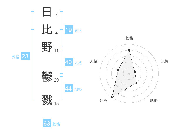 日比野 鬱戮さんを姓名の画数から五運を鑑定