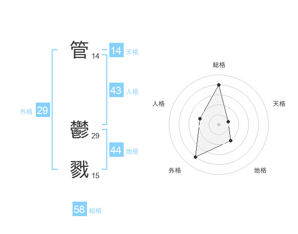 管 鬱戮さんの総格は58画の4点!