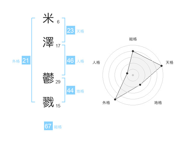 米澤 鬱戮さんの総格は67画の4点