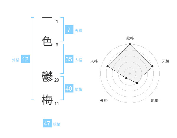 一色 鬱梅さんを姓名の画数から五運を鑑定