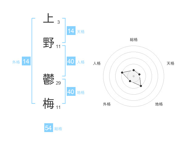 上野 鬱梅さんを姓名の画数から五運を鑑定