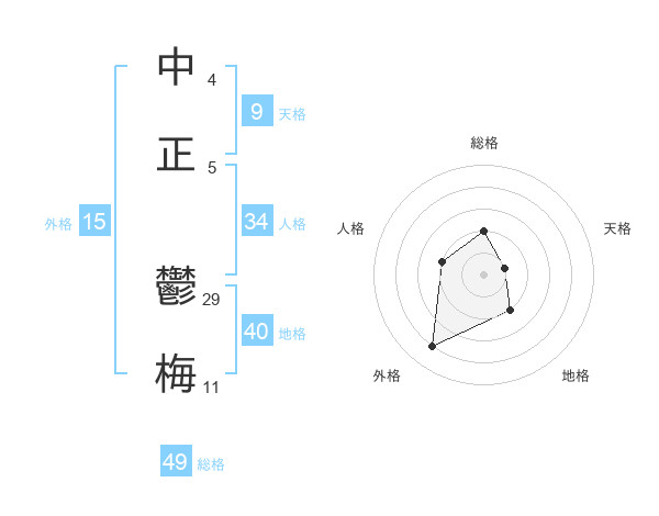 中正 鬱梅さんの総格は49画の2点!
