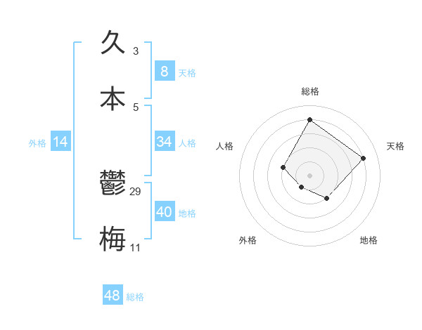 久本 鬱梅さんを姓名の画数から五運を鑑定