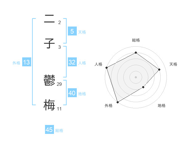 二子 鬱梅さんの総格は45画の4点!