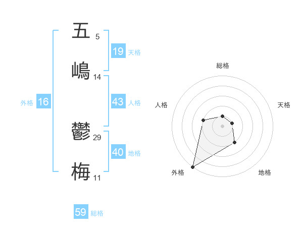 五嶋 鬱梅さんを姓名の画数から五運を鑑定