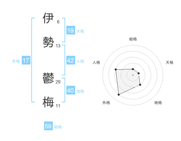 伊勢 鬱梅さんの総格は59画の1点!