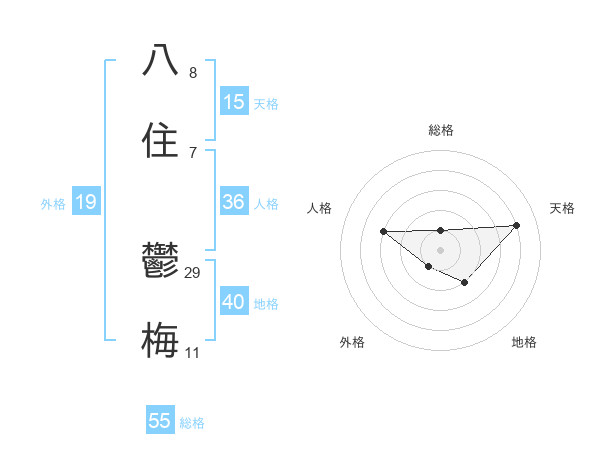 八住 鬱梅さんを姓名の画数から五運を鑑定
