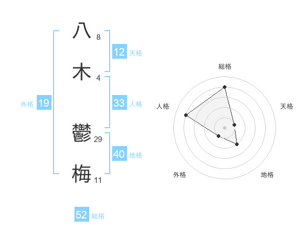 八木 鬱梅さんの総格は52画の4点!