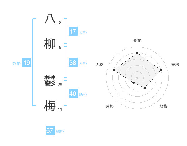 八柳 鬱梅さんの総格は57画の4点!