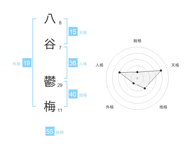 八谷 鬱梅さんの総格は55画の1点!