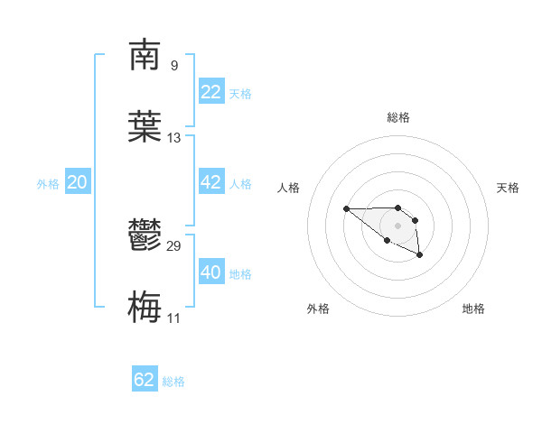 南葉 鬱梅さんを姓名の画数から五運を鑑定