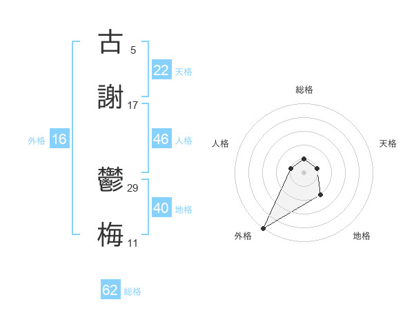 古謝 鬱梅さんの天格は22画の1点!