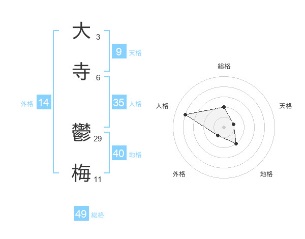 大寺 鬱梅さんを姓名の画数から五運を鑑定