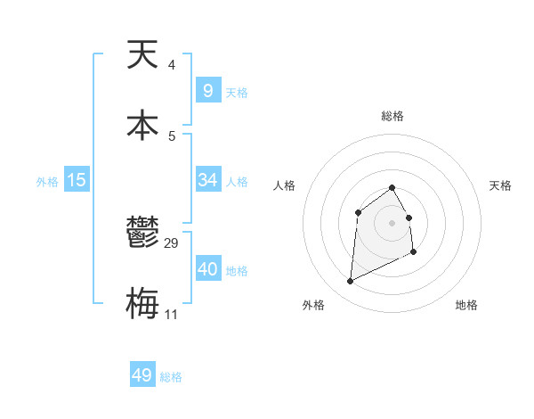天本 鬱梅さんの総格は49画の2点!