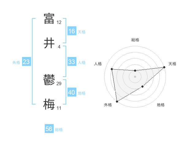 富井 鬱梅さんを姓名の画数から五運を鑑定