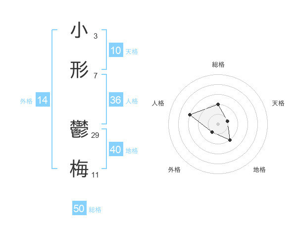 小形 鬱梅さんの総格は50画の2点!