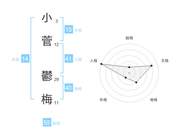 小菅 鬱梅さんの総格は55画の1点!