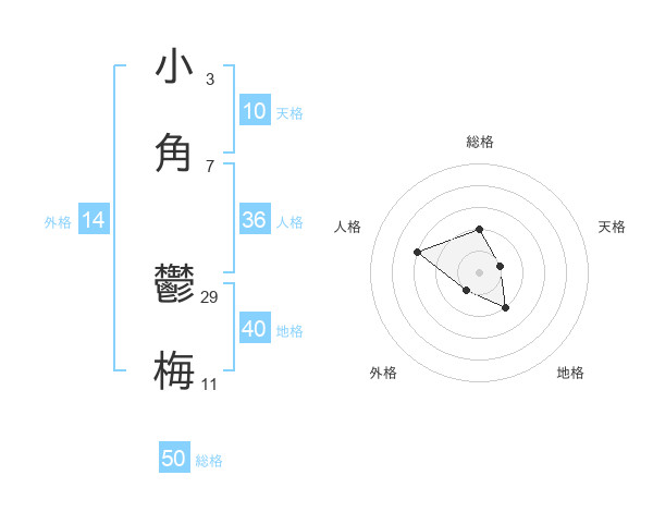 小角 鬱梅さんを姓名の画数から五運を鑑定