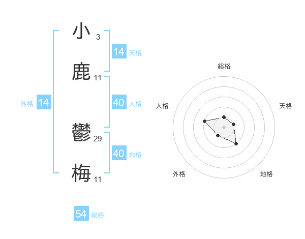 小鹿 鬱梅さんの外格は14画の1点!