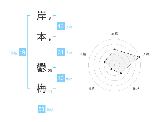 岸本 鬱梅さんを姓名の画数から五運を鑑定