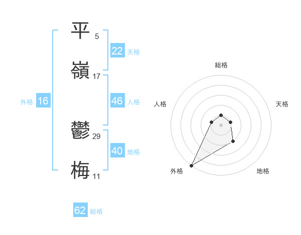 平嶺 鬱梅さんを姓名の画数から五運を鑑定