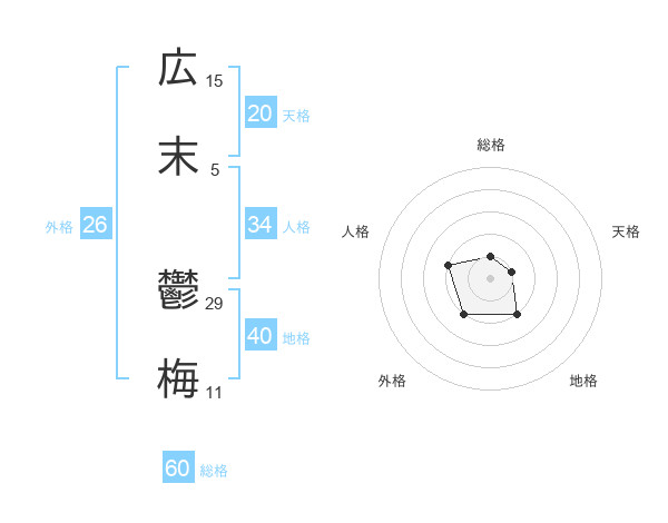 広末 鬱梅さんの天格は20画の1点!