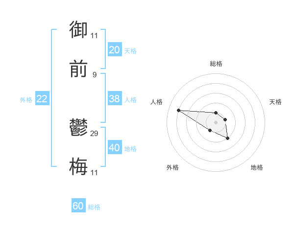 御前 鬱梅さんを姓名の画数から五運を鑑定
