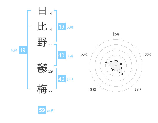 日比野 鬱梅さんを姓名の画数から五運を鑑定