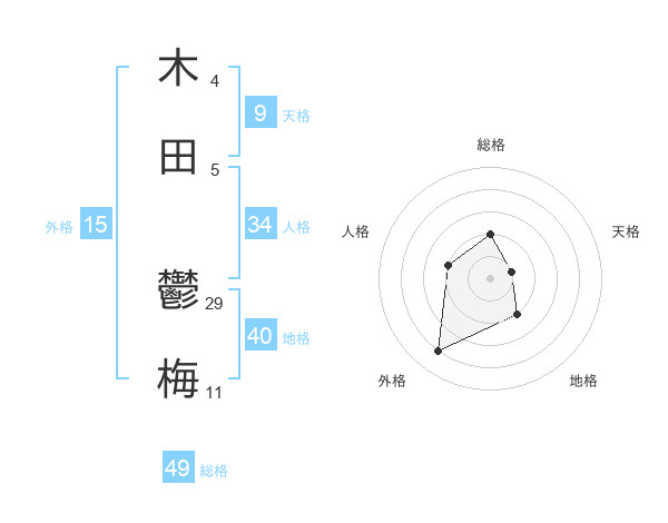 木田 鬱梅さんを姓名の画数から五運を鑑定