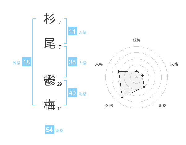 杉尾 鬱梅さんを姓名の画数から五運を鑑定