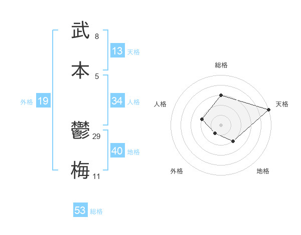 武本 鬱梅さんの天格は13画の5点!