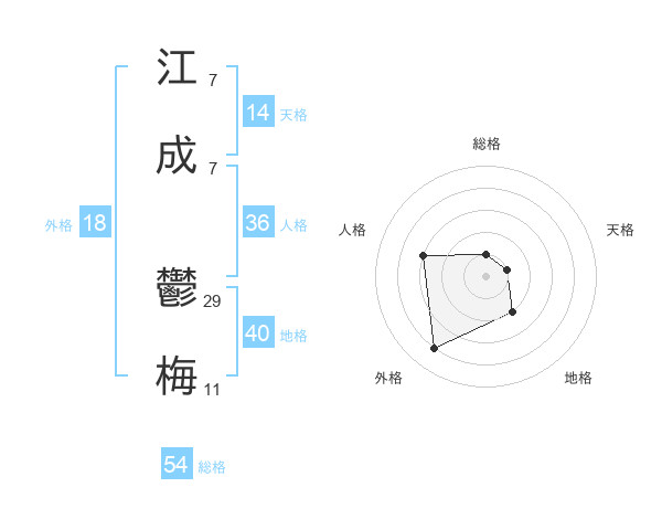 江成 鬱梅さんを姓名の画数から五運を鑑定