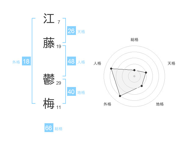 江藤 鬱梅さんの総格は66画の1点!