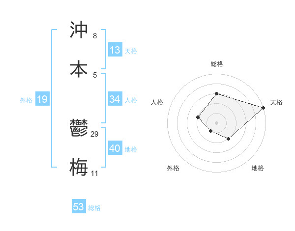 沖本 鬱梅さんの総格は53画の3点!
