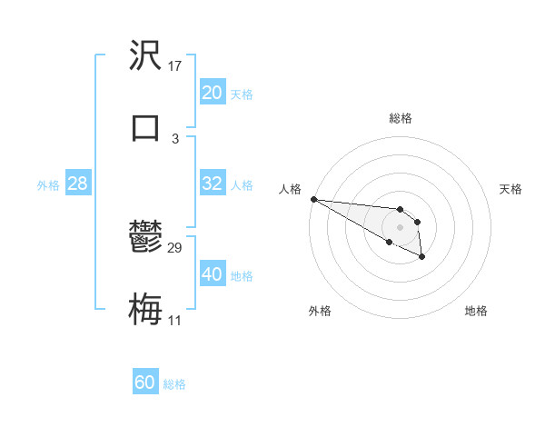 沢口 鬱梅さんを姓名の画数から五運を鑑定