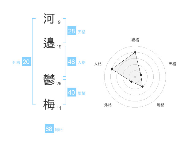 河邉 鬱梅さんの総格は68画の4点!