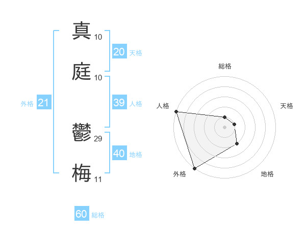 真庭 鬱梅さんを姓名の画数から五運を鑑定